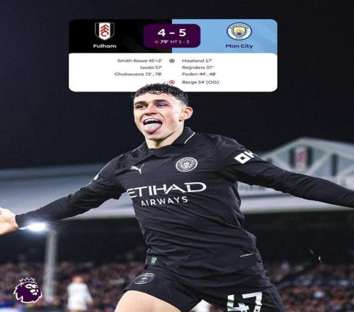 此役客场对阵富勒姆,曼城一度取得5-1领先,但随后连丢三球,最终以5-4的比分险胜对手。