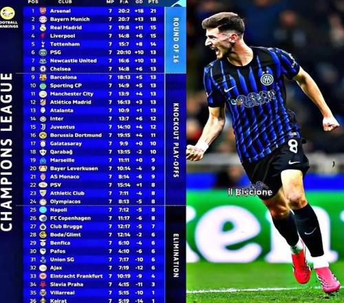 所以国米基本上要在2月份踢两场淘汰赛附加赛,但附加赛里也有区别,如果能排在9-16名那就能获得种子队资格,赛程上有先客后主的优势,排名越高抽到弱旅的概率也就越大。而如果我们算一下就能发现,其实不论本场比赛结果如何,国米其实已经基本锁定了种子队资格!
